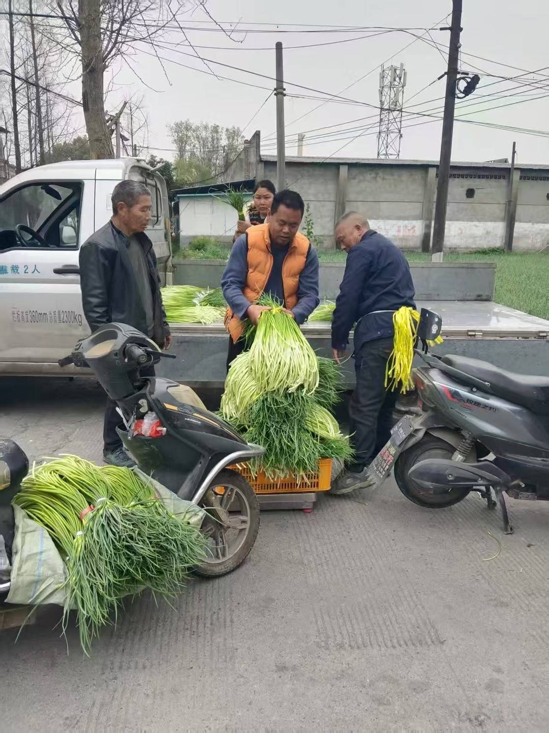 走进东林村,绿油油的蒜薹长势喜人,种植大户陈洪正忙着组织采摘蒜薹。蒜农们弓腰低首,拿着专用收割刀具,在蒜茎上轻轻一划,拽住蒜薹尾巴,稍稍地用力一拔,一条嫩绿的蒜薹便已收获,不一会儿就采摘了一大捆。