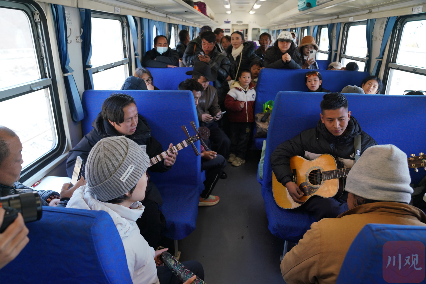 在慢火车上歌唱的扎诺乐团成员。吴聃 摄