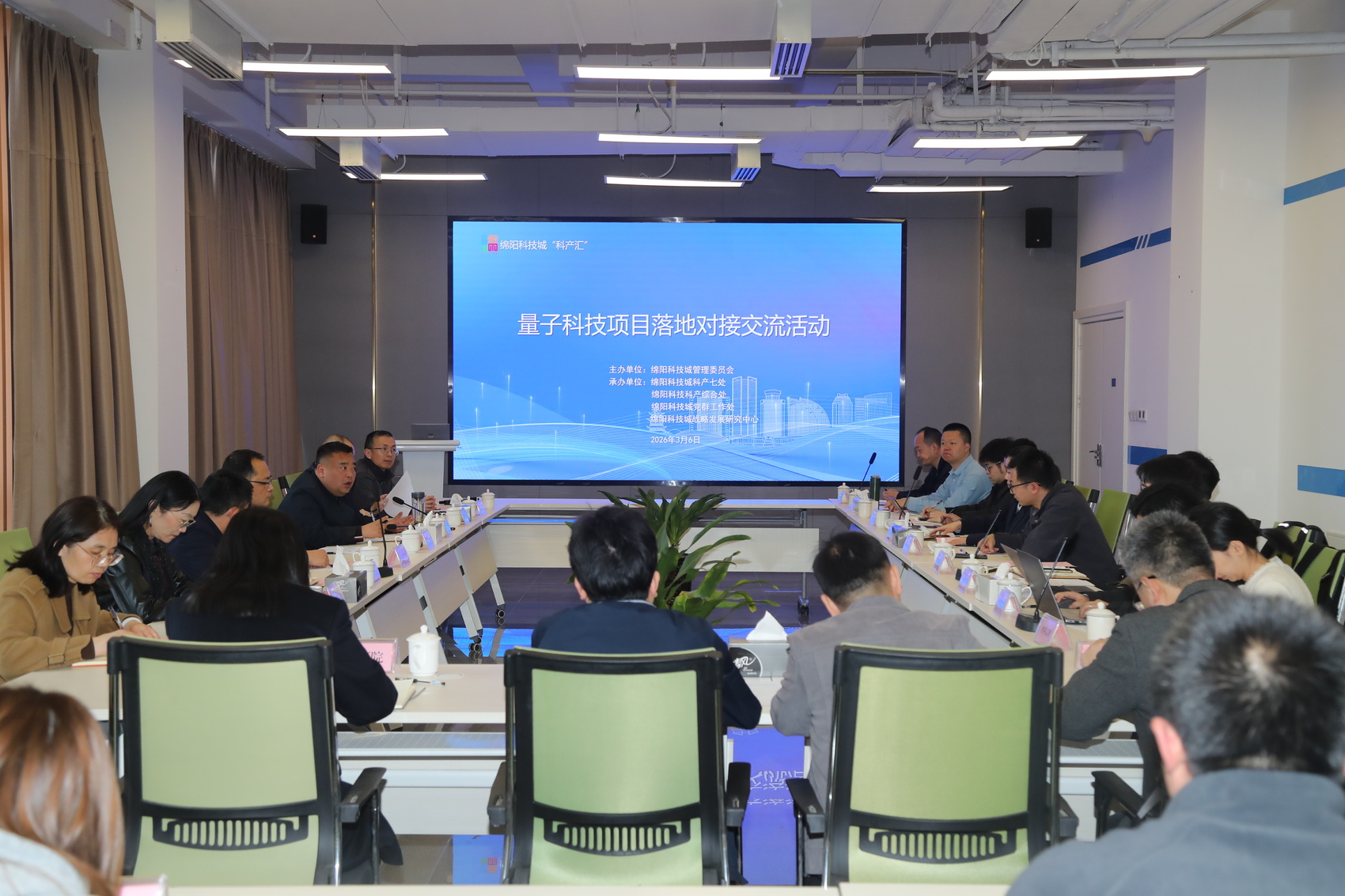 为进一步巩固四川省2026量子科技产业生态发展大会成果,推动量子科技从“纸面签约”走向“实质性落地”,3月6日,绵阳科技城管委会举办“科产汇”第三期——量子科技签约合作场景落地对接交流活动。政府相关部门、科研院所、产业链企业及项目合作单位代表汇聚一堂,围绕12个已签约的量子技术场景化落地路径展开深度对话,为绵阳量子科技产业“建圈强链”注入强劲动能。