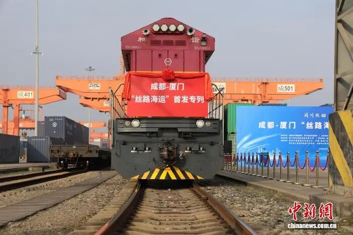 本次首发专列满载四川本地特色货品,从成都城厢站始发,经铁路直达厦门前场站,在厦门港换装国际班轮后,通过海运直达东南亚等地区,实现铁路运输、港口中转、国际海运全程无缝衔接,构建起西部内陆南向出海高效、稳定、便捷的物流新路径。