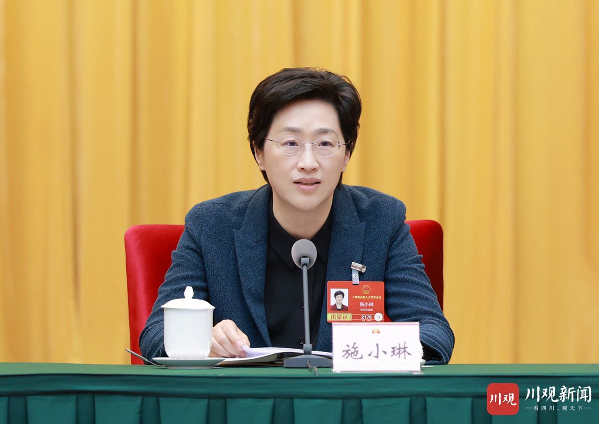 3月6日上午,十四届全国人大四次会议四川代表团在驻地举行全体会议,审查“十五五”规划纲要草案。省委书记、省人大常委会主任、代表团团长王晓晖主持会议,省委副书记、省长、代表团副团长施小琳参加。