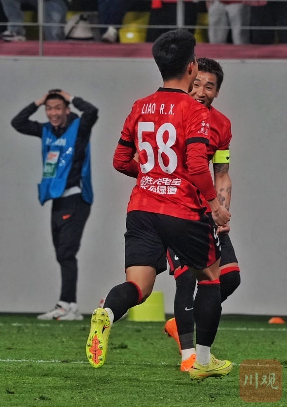 替补登场的成都蓉城队员58号廖荣祥破门得分。