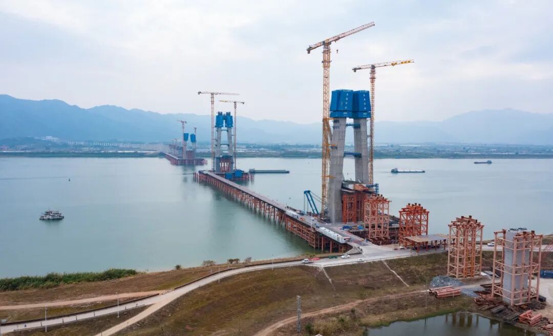 珠肇高铁西江特大桥施工现场