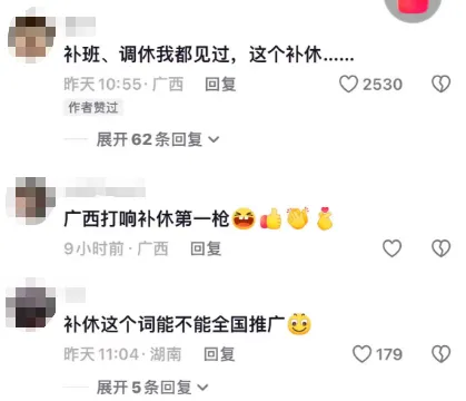 也有眼尖的网友表示,放假通知出现了“补休”,称这是“好小众的词语”。