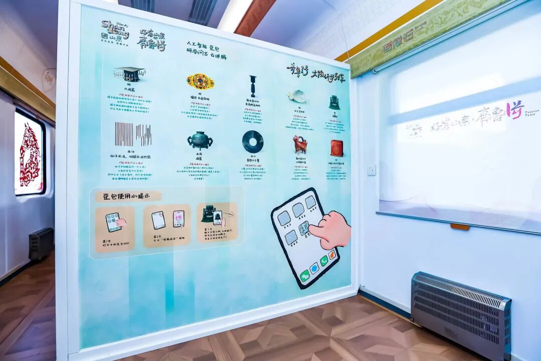 列车上,有青铜、玉、瓷、陶、画像石、建筑、服饰七大主题车厢。车厢里均衡融入山东、河北两省重点文物资源,而列车则串联鲁冀两省共计7个目的地,构建起一条贯穿齐鲁文化脉络、延伸至燕赵大地的动态研学走廊。