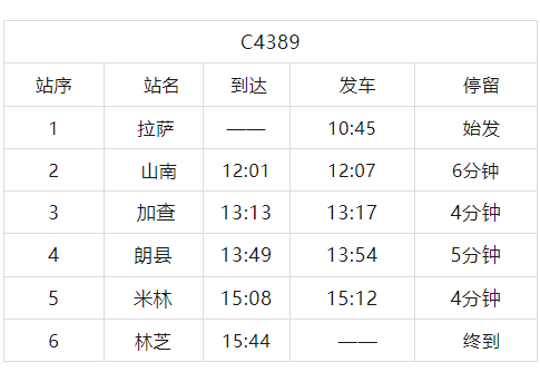 一、2026年3月7、8日拉萨至林芝间加开C4389次动车