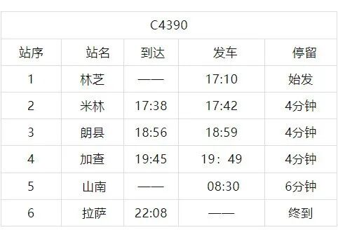 二、2026年3月7、8日拉萨至林芝间加开C4390次动车