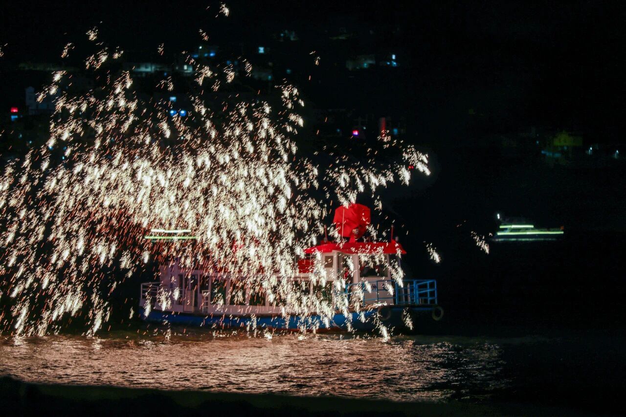 在九襄镇的花神广场,“十二仙子”衣袂飘飘,正为解谜的游客轻声提示;不远处的三强村田垄边,一群成年人挽起裤腿、弯腰摸鱼,溅起的泥点落在笑声里;待到夜幕降临,汉源湖上,火壶翻转、铁花如雨,把夜空染成金色。