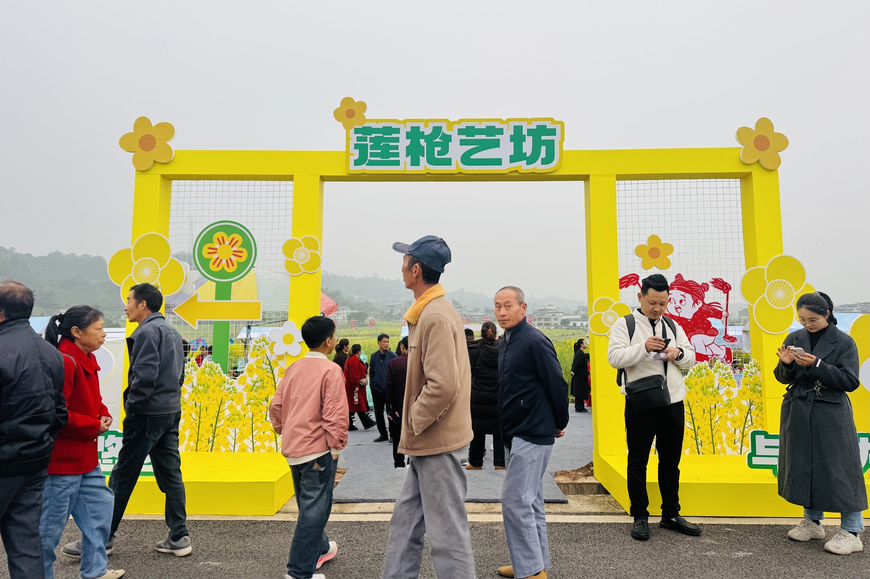 表演结束后,一场莲枪主题盛装巡游正式开启。身着传统服饰的表演者们手持莲枪,踏着明快的节拍,沿着彩色步游道缓缓前行。莲枪击打肩背的清脆声响、整齐划一的队列步伐,与路边盛放的油菜花相映成趣,引得游客们纷纷跟在队伍旁,用镜头记录下这喜庆热烈的一幕。