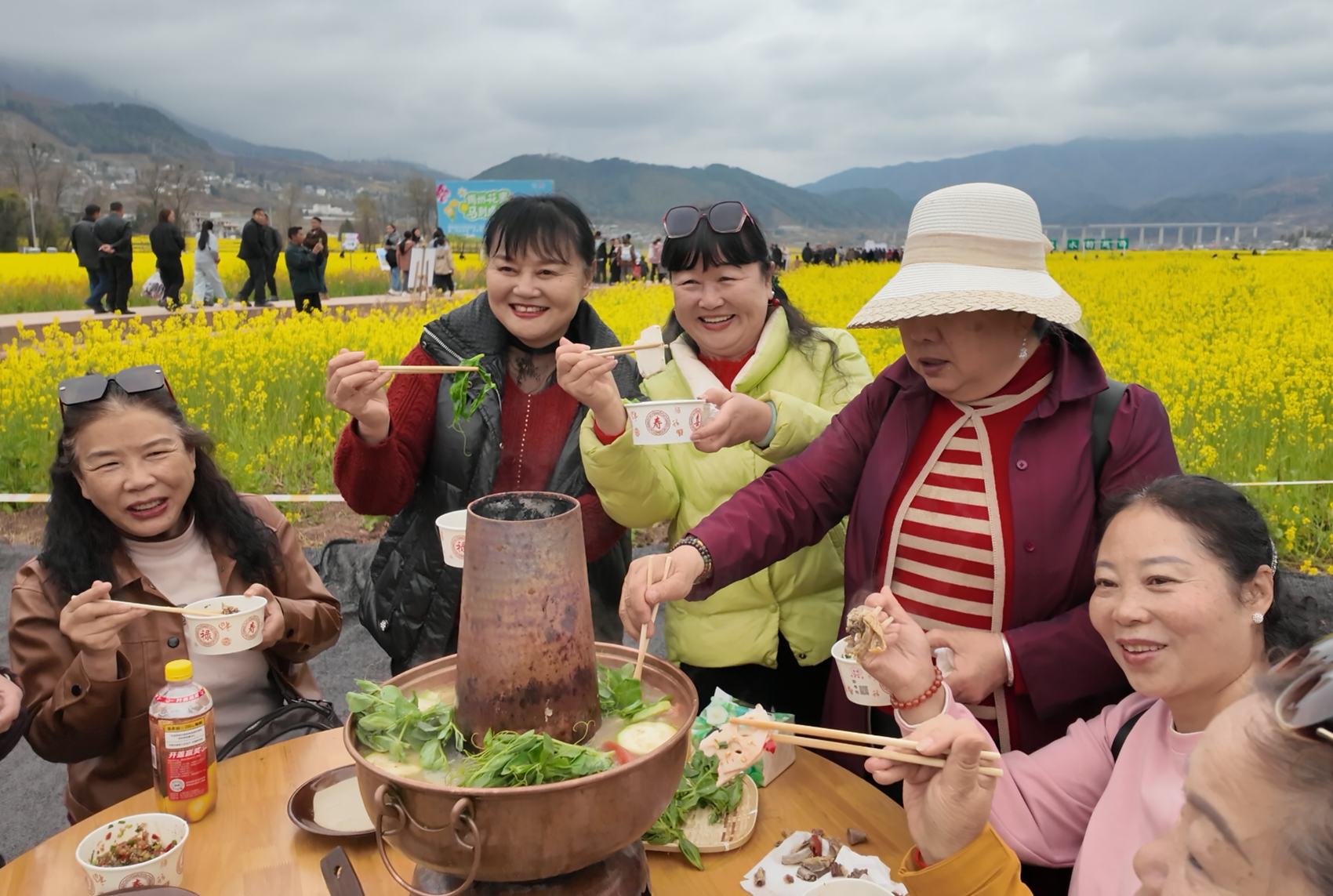 中午时分,花田坝坝宴热闹开席。“九大碗”以“五荤四素”承载“九九长寿”的美好寓意,游客围坐花间,品味地道“越西味道”。“花仙子选拔·春日风采秀”同样精彩,选手们各展才艺,最终评选出20名花仙子,成为推广越西的青春力量。