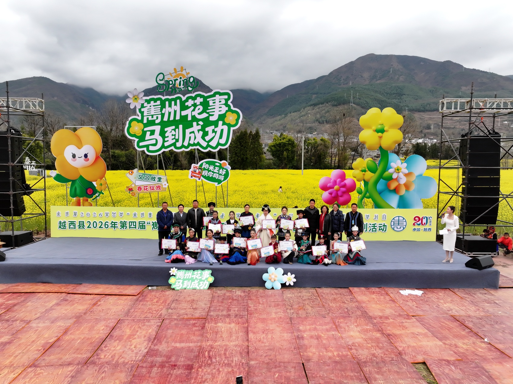 阳春三月,春风拂过嶲州大地,凉山州越西县大瑞镇的万亩油菜花田再披金装。3月7日,以“嶲州花事·马到成功”为主题的2026年第四届春季繁花雅赏系列活动启幕。这场融合艺术展览、田园品茗、花海演出、乡土美食与风采选拔的春日盛宴,以花为媒,绘就农文旅深度融合的乡村振兴新画卷。