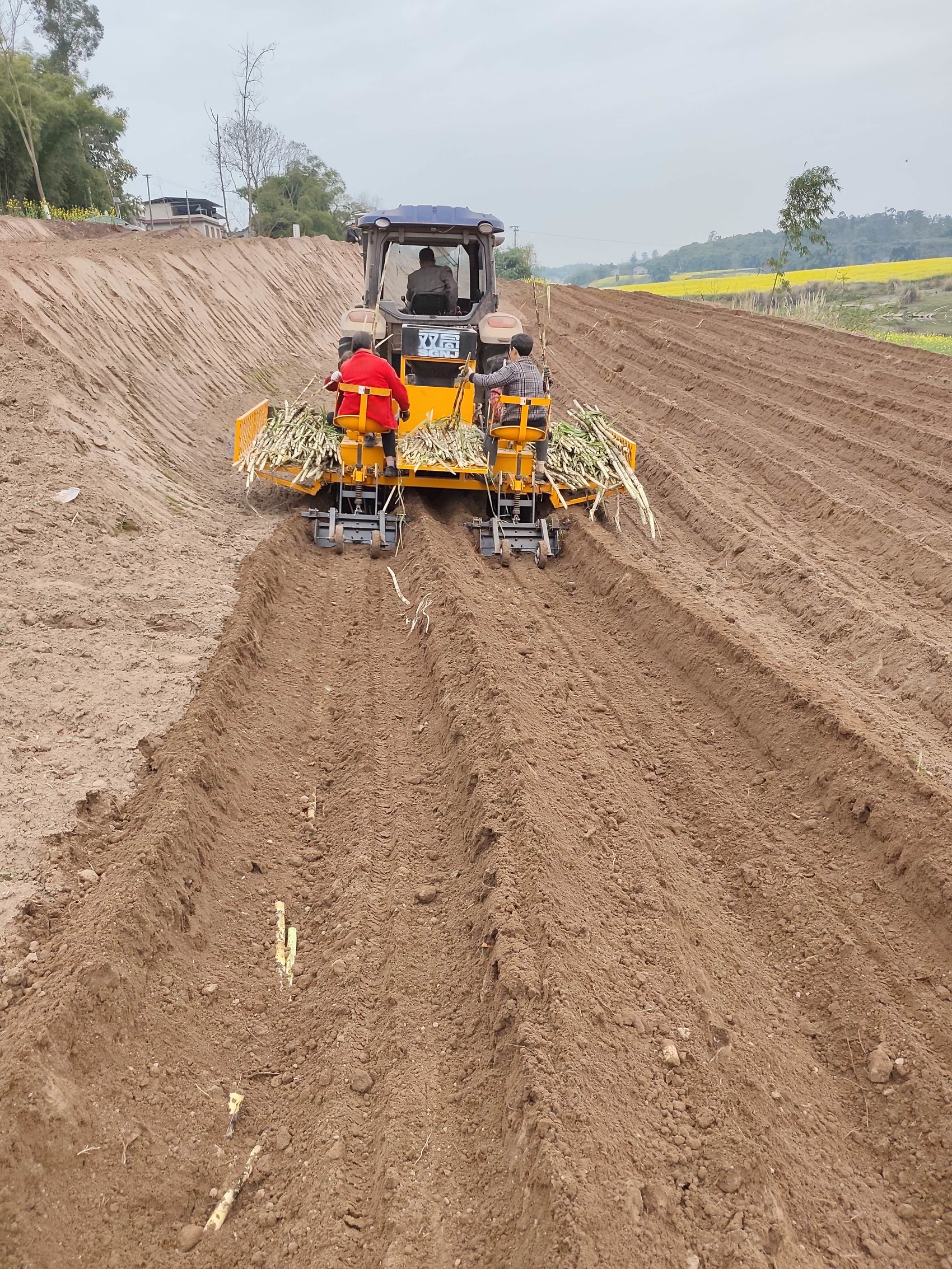 “我们公司去年底在甘家渡村和龙门村流转了1000多亩土地,经过土地整理,今春就规模种植加工用甘蔗。但是传统的人工播种,既费人工又花钱。经内江市农业科学院的专家推荐,我们从广西采购了1台价值5万多元的甘蔗播种机,春节后就运到内江了。”内江鑫永凌建设开发有限公司工作人员李唐明说,“之后,我们对机手和农户开展了半天培训, 3月1日就开始机械化播种了,这甘蔗播种机能将一根长长的甘蔗种切成约20厘米长并带有2-3个芽头的小段,迅速地种到土里。同时,它还可以进行开沟、施肥、覆土、盖膜乃至铺滴灌带等作业。”