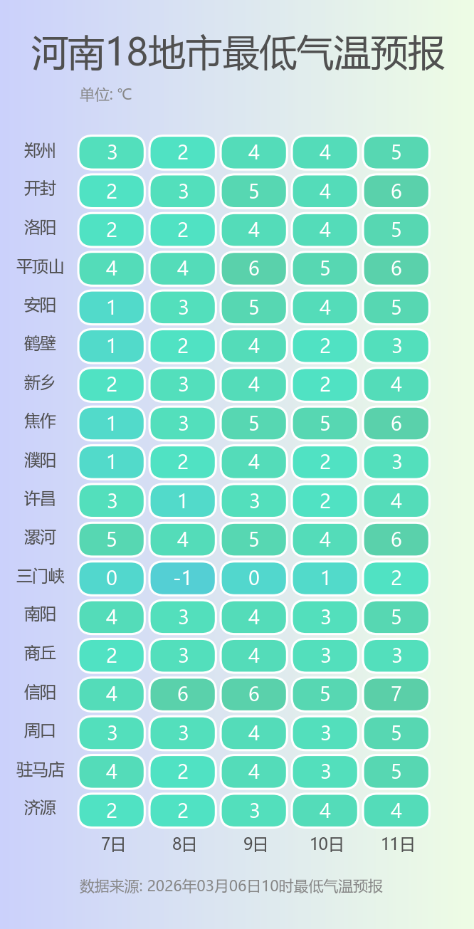 预报来源:河南省气象台2026年3月6日12时预报