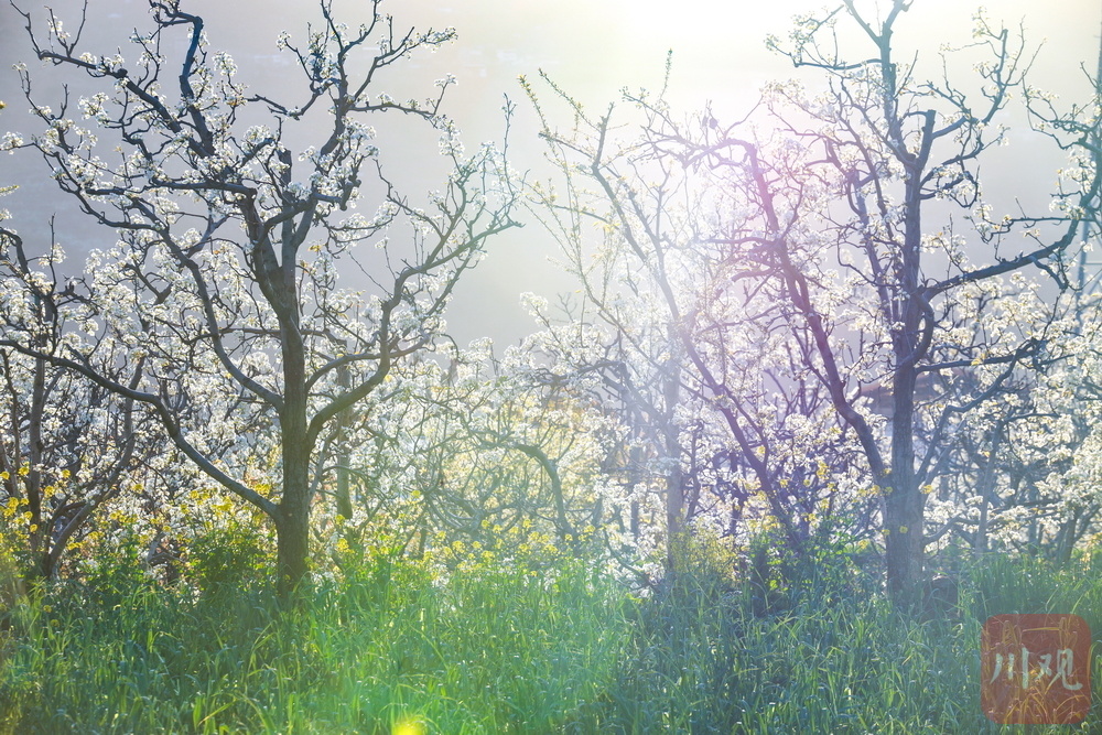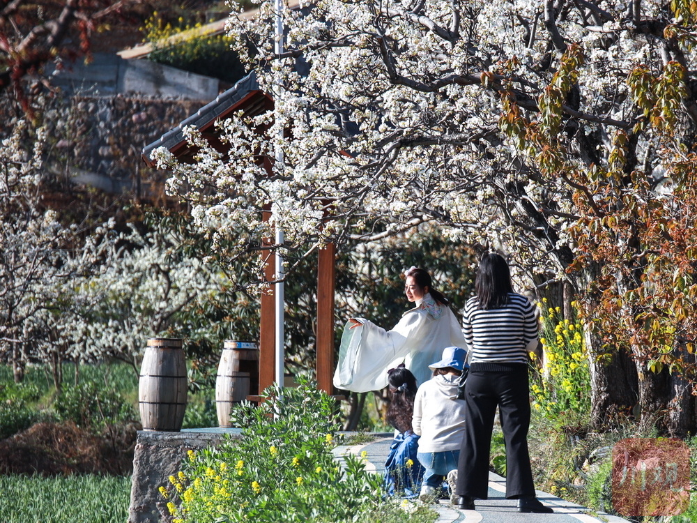 又是一年三月到,汉源梨花今又开。3月7日,正值一年中最美时节的雅安市汉源县九襄镇,河谷高山、院舍田间,20万亩梨花竞相开放,与之前已提前“到位”的李子花等相互交融、汇聚成海。清风拂过,片片繁花犹如白雪纷纷飘扬,掀起淡淡花香,美不胜收。