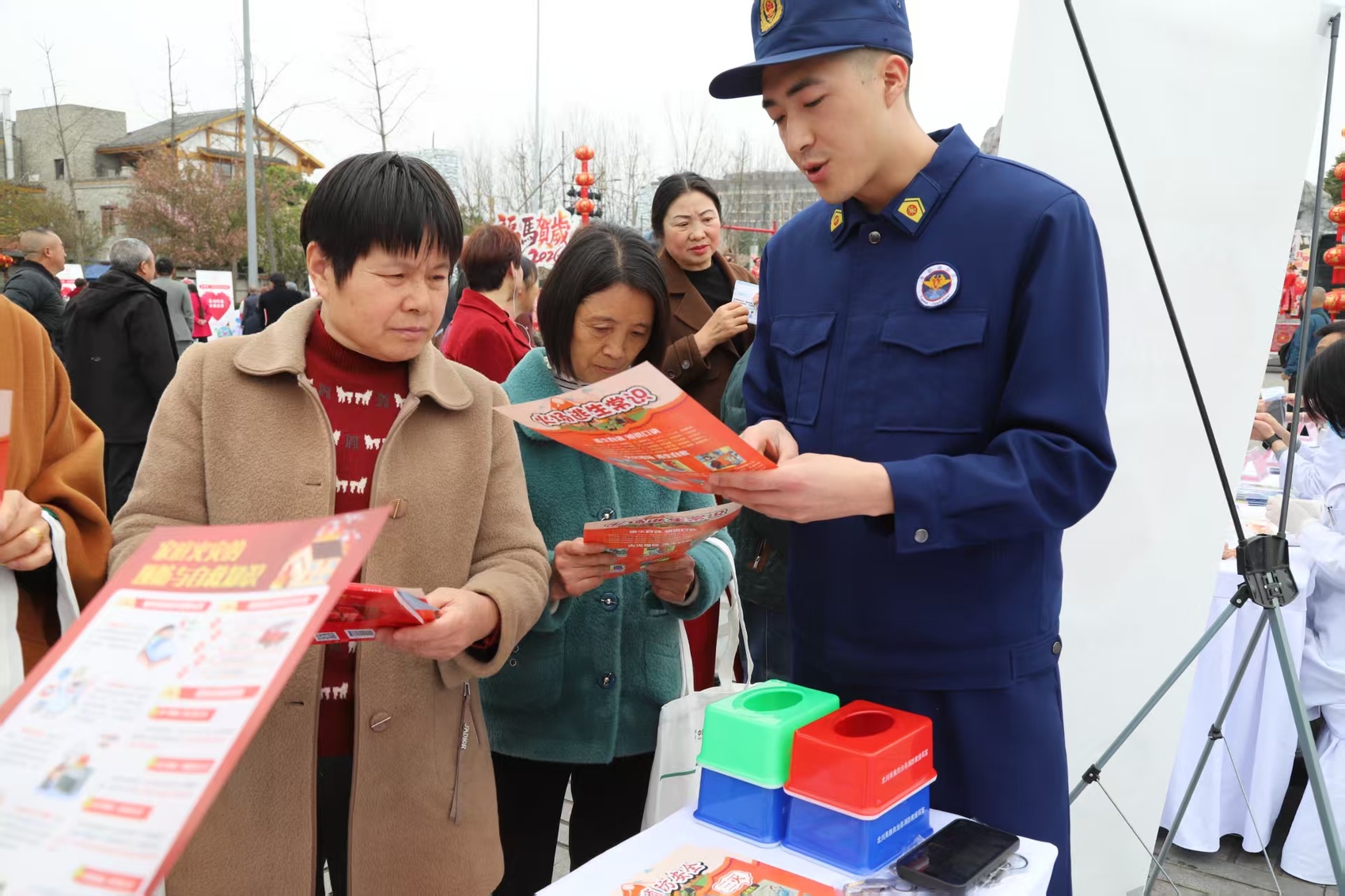 消防安全知识科普宣传志愿服务台前围满群众