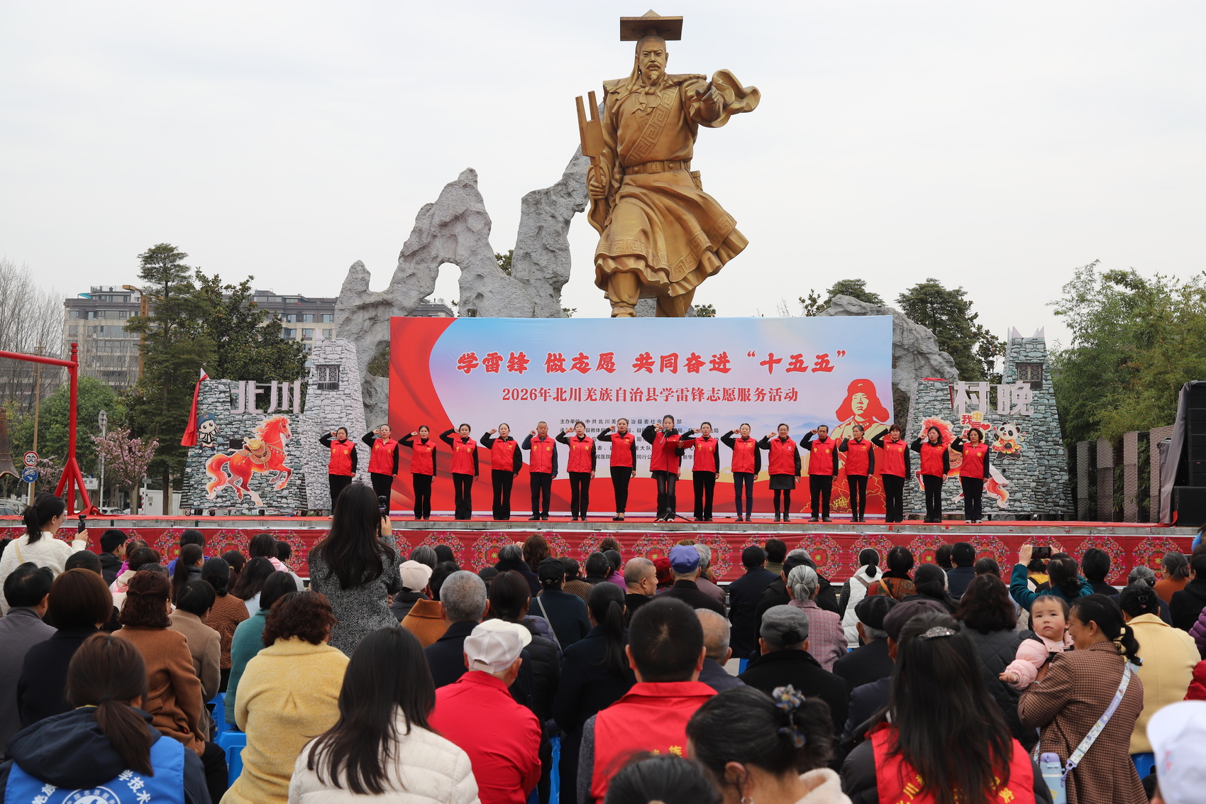 3月5日,第63个“学雷锋纪念日”当天,北川羌族自治县在禹王广场举行以“学雷锋 做志愿 共同奋进‘十五五’”为主题的志愿服务活动。