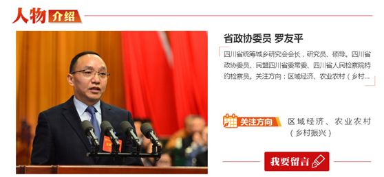 省政协委员、四川省统筹城乡研究会会长、省人民检察院特约检察员罗友平