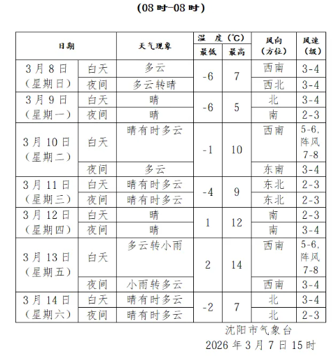 沈阳明日多云