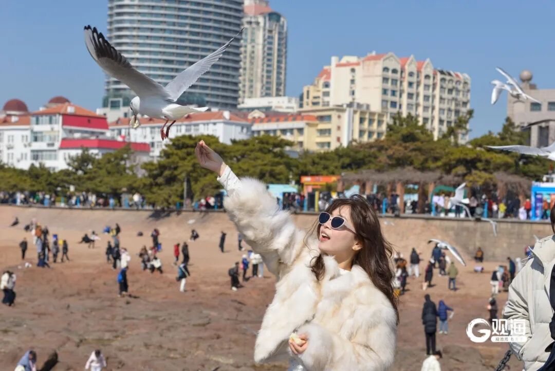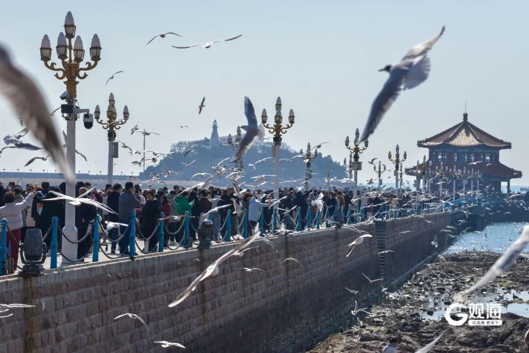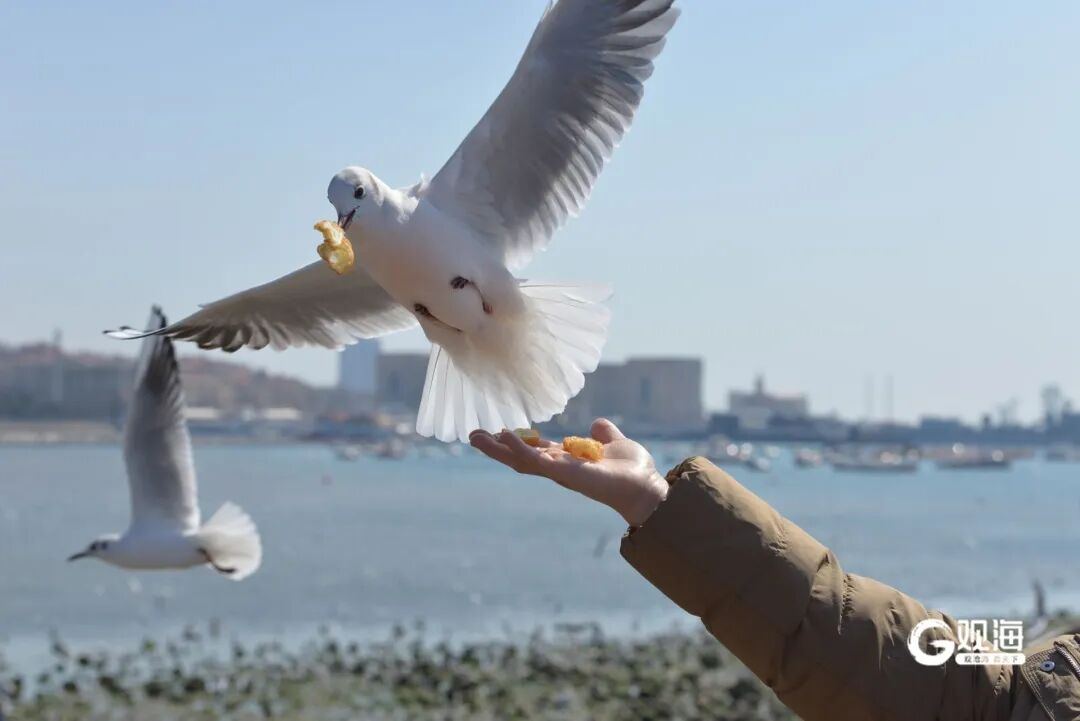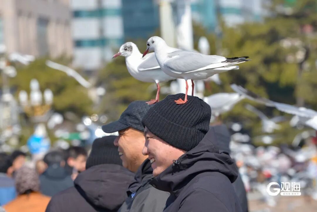 成群的海鸥与游客亲密互动,