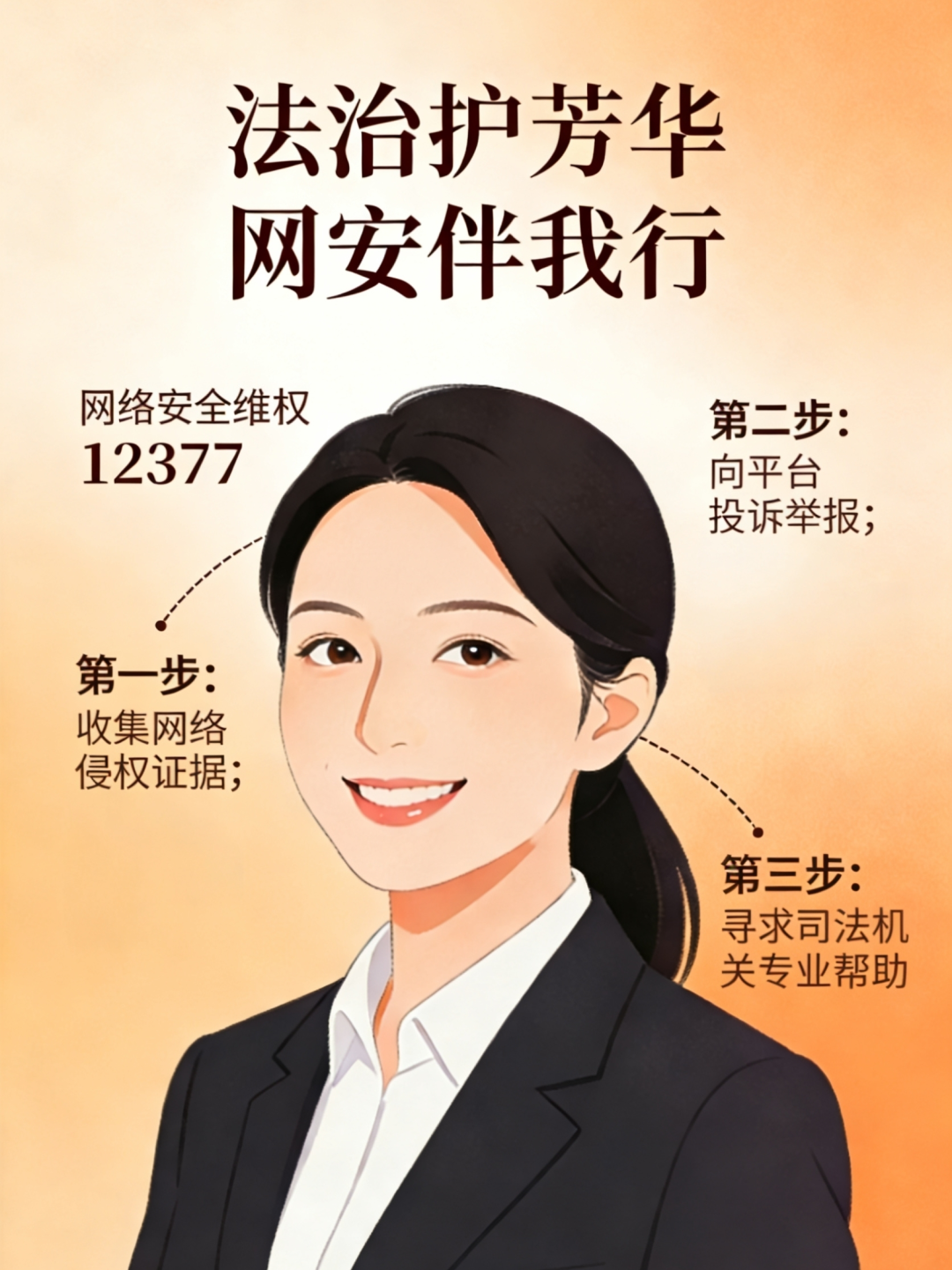 - 遭遇网暴、隐私泄露、恶意诽谤时,第一时间截图、录屏、保存链接,固定好证据。