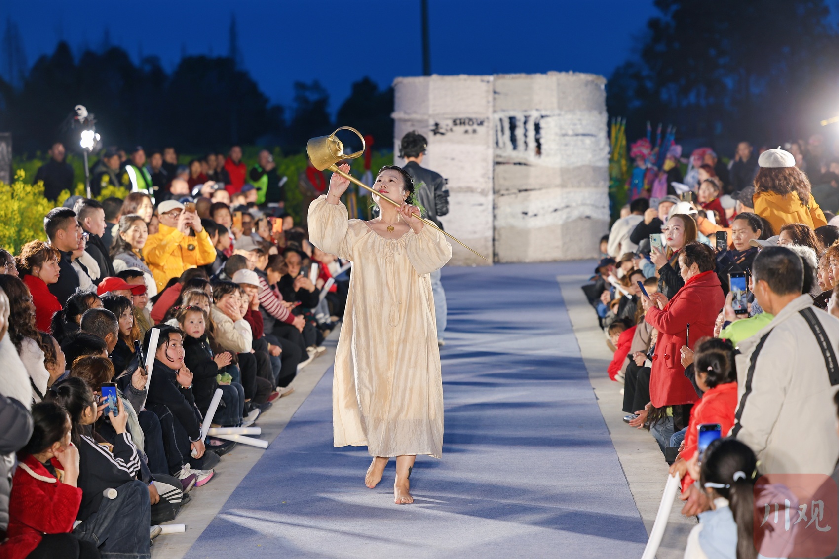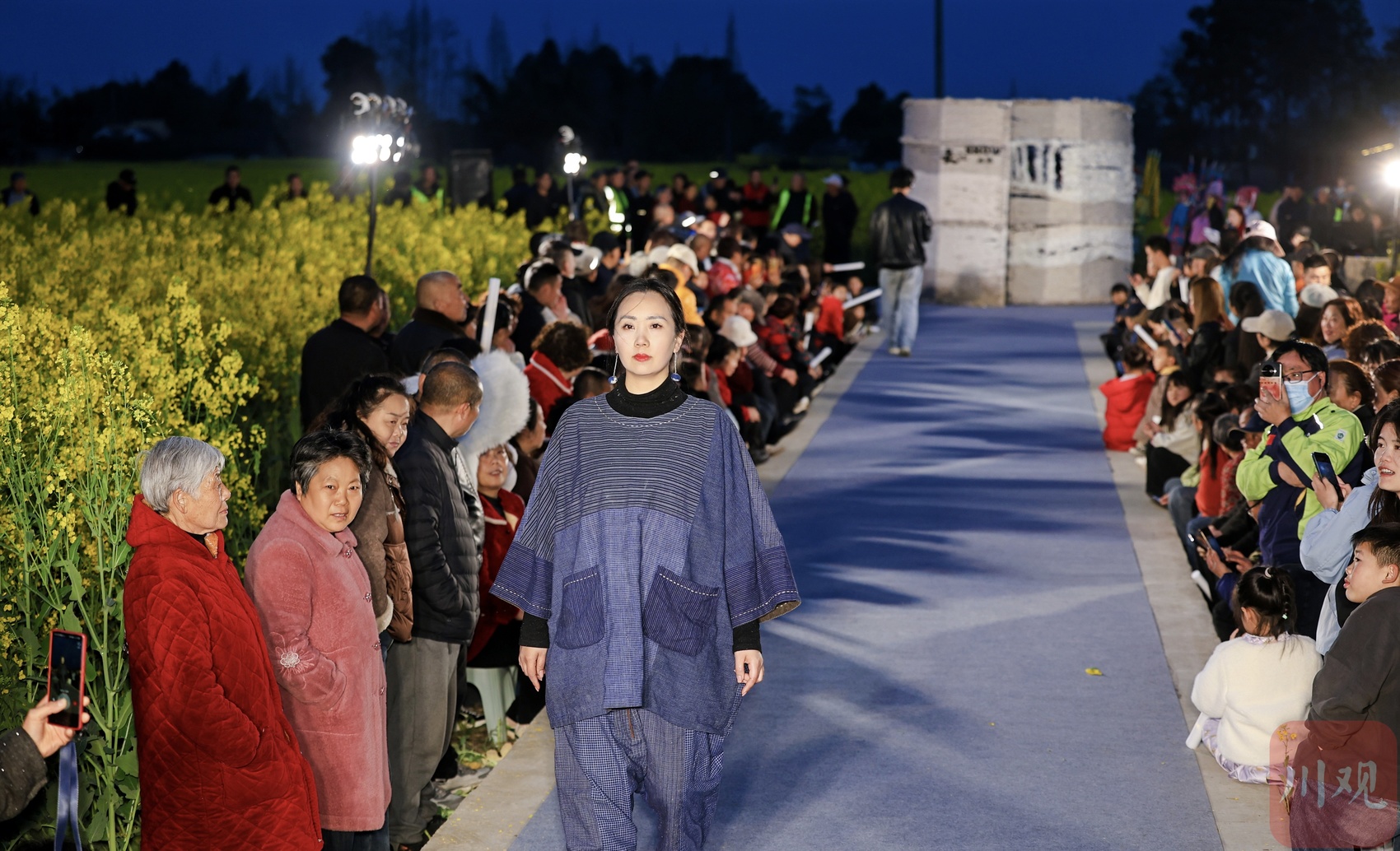 3月7日晚,德阳市旌阳区德新镇长江村油菜花海旁,一场“非遗之美·匠心传承”主题时尚秀火热上演。乡间道路化身专属T台,春日田园遇上非遗匠心,上演传统文化与乡村风光的惊艳碰撞。