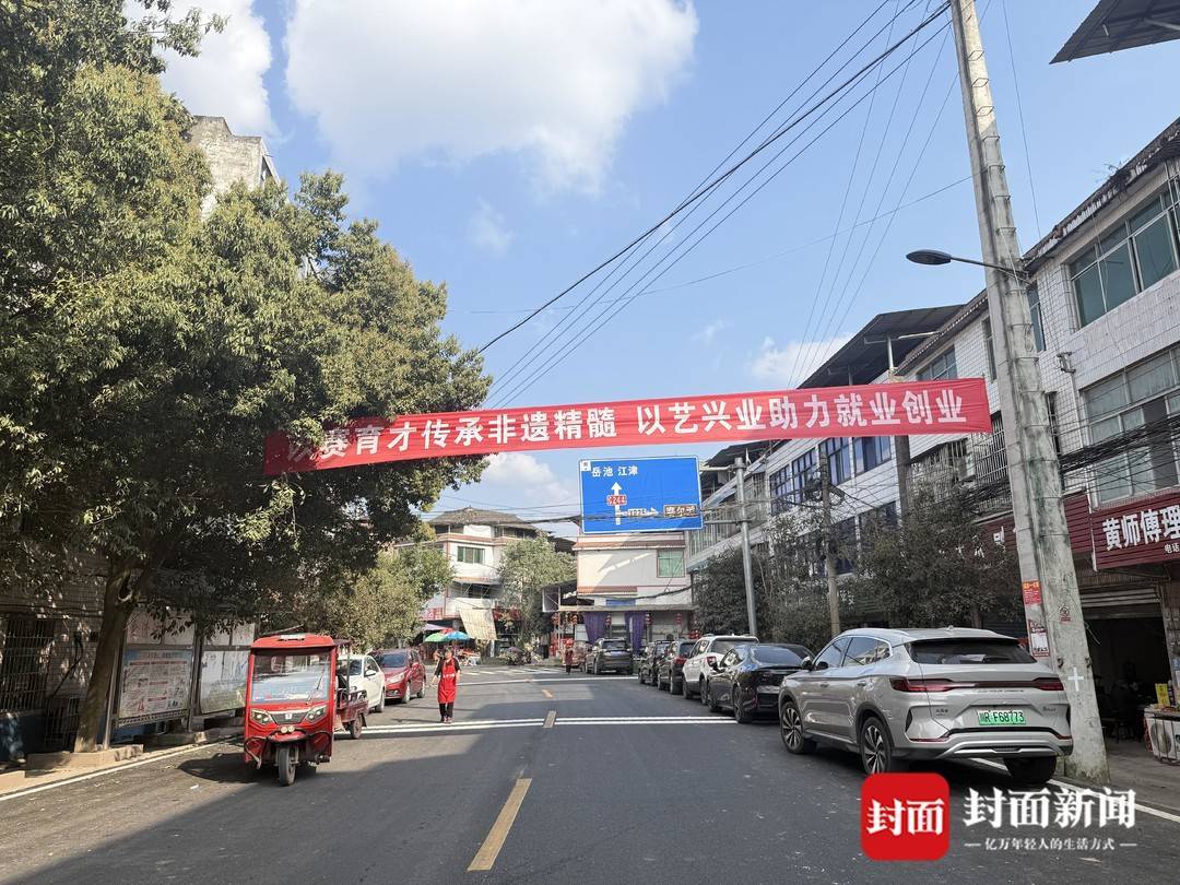 如今在场镇上走一圈,竹编的影子无处不在。街道旁、生活馆里、后面的园区,篾条的青色从各个角落冒出来。