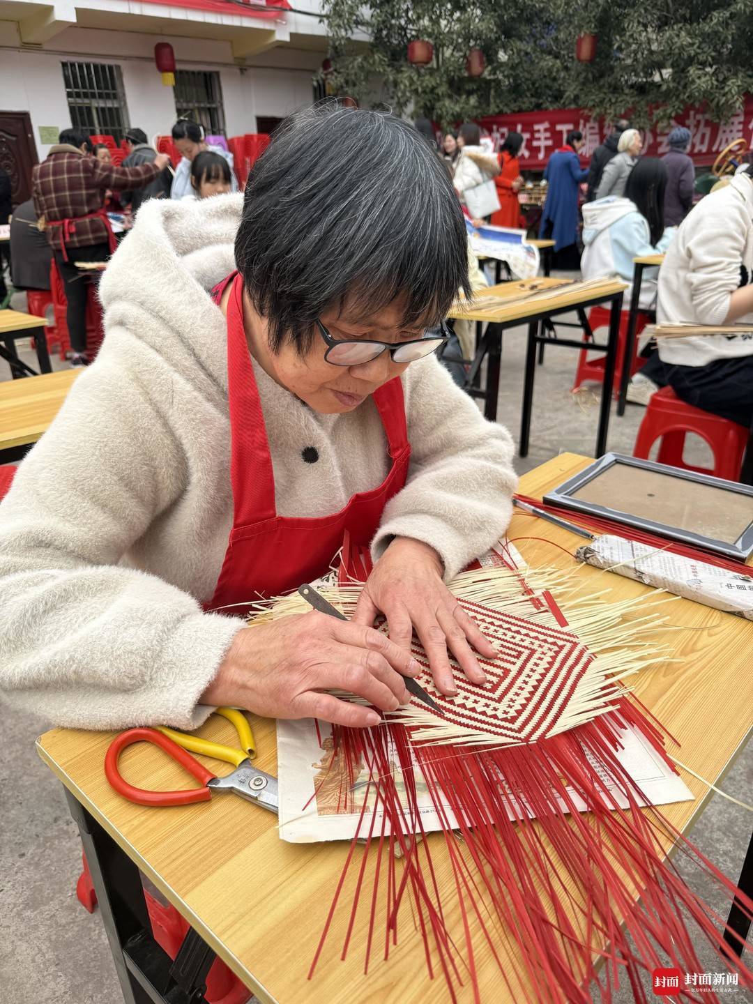 下午三点,院子里人少了。一个头发有些花白的婆婆走进来,手里拿着自己技能大赛的作品。是一个马字,编到一半,篾条有些扭曲。她把竹编递过来。