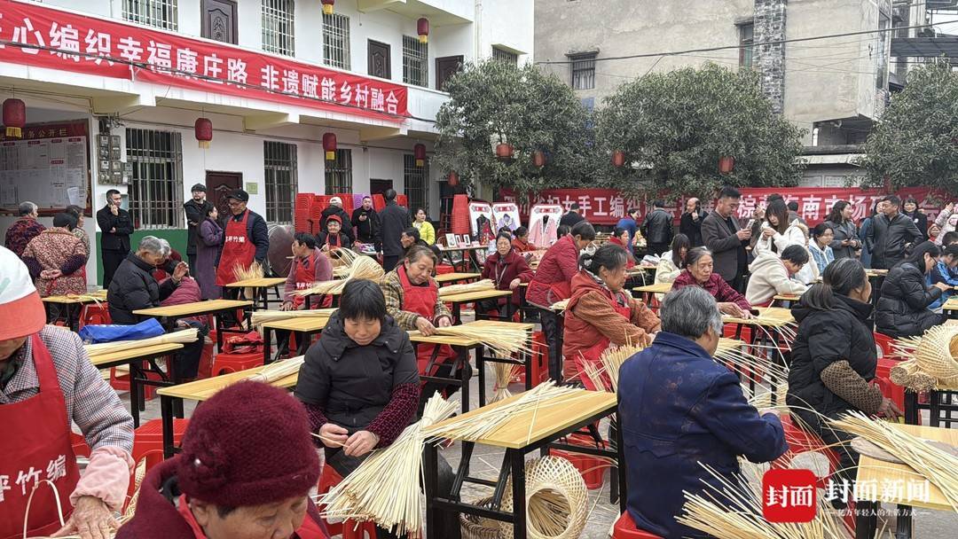3月4日,南充市高坪区长乐镇庙子沟村(原斑竹乡)。竹编人才技能创新大赛,院坝里坐满人,篾条在大家手里翻飞。板凳不够坐,有人就靠在墙根站着,有人蹲在台阶上。