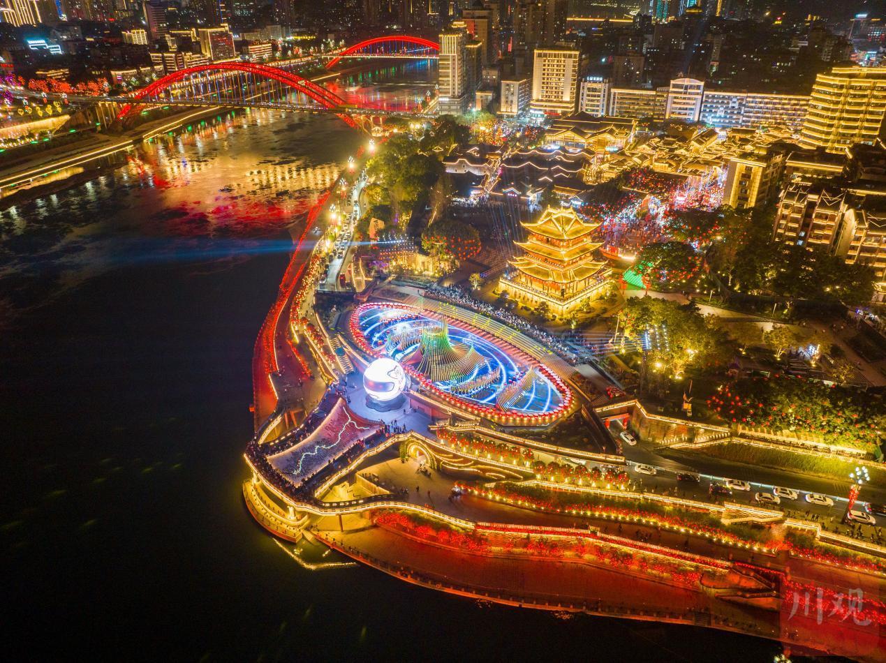 兴文县“万马奔腾 兴潮澎湃”2026新春元宵晚会在空铁新区同心湖广场精彩上演。璀璨灯光与水景交相辉映,裸眼3D视觉技术点亮水上舞台,非遗绝技、民俗表演、现代歌舞轮番登场,上万名群众沉浸在光影交错的视听盛宴中,共庆元宵、共赏美景。