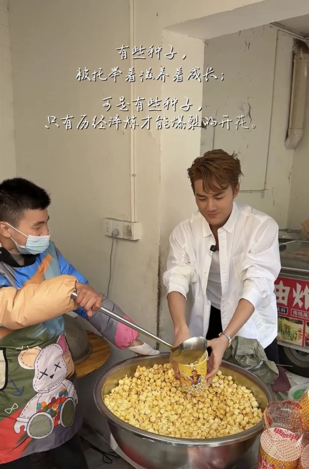 去年4月,吴克群曾帮助过杭州脑瘫男孩涛涛卖爆米花。在他的号召力之下,不少人前去光顾了涛涛的小摊,为涛涛加油。(此前报道>>)