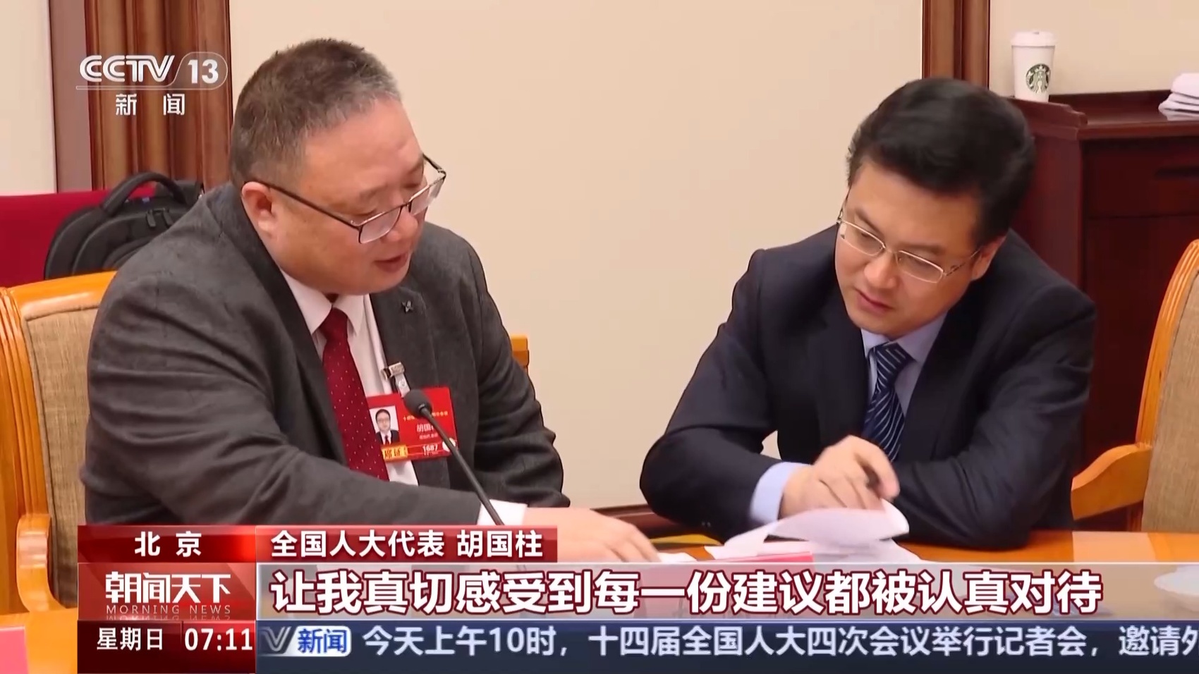 国办工作人员 陈科:他们提出的每一条建议都很鲜活,有深度有温度,凝结着民生关切。我们在这里旁听,原汁原味记录,坦诚沟通交流,是人民政府与代表委员沟通联系的直通车。