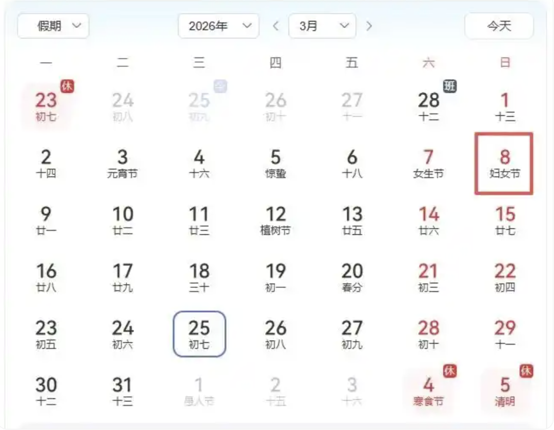 今年妇女节居然在周日!