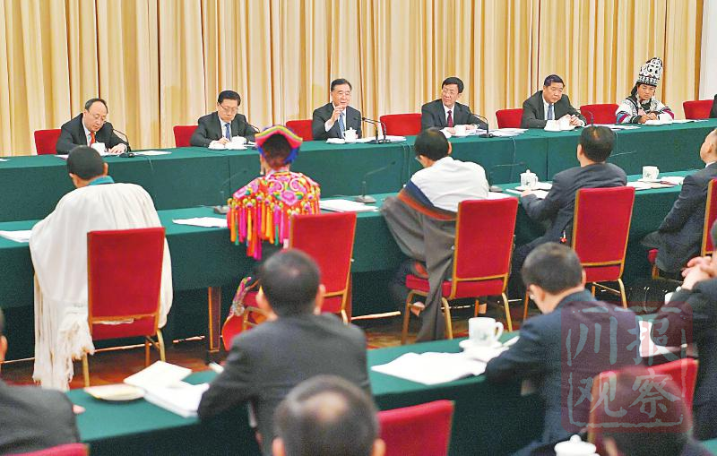 作为四川选出的全国人大代表,中共中央政治局常委、国务院副总理汪洋,与四川代表团全体代表一同审议政府工作报告并发言。最高人民检察院检察长曹建明参加审议。省委书记、省人大常委会主任、代表团团长王东明,省委副书记、省长、代表团副团长尹力发言。