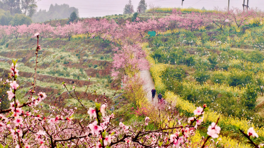 3月7日,犍为县石溪镇联盟村,以“悦动联盟村 ‘醉’美桃花季”为主题的犍为县第三届悦动桃花文化旅游季正式开启。漫山桃花绽放,间杂金黄的油菜花田,吸引各地游客穿行其间拍照打卡。