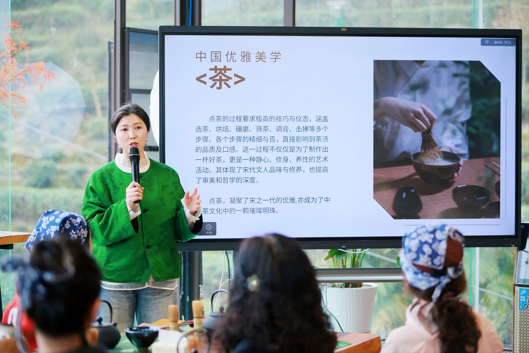 机会真的来了。随着研学市场逐渐升温,“茶溪谷”的名气慢慢传开。王小琴很珍惜这些慕名而来的客人,更是抓紧时间,带着团队不断打磨研学课程:小学生玩什么、初中生体验什么、高中生研究什么,每套方案都反复推敲。如今,研学课程从采茶制茶,扩展到功夫茶、长嘴壶茶艺、宋代点茶等,覆盖小学到高中不同年龄段,每年接待孩子上万人次。