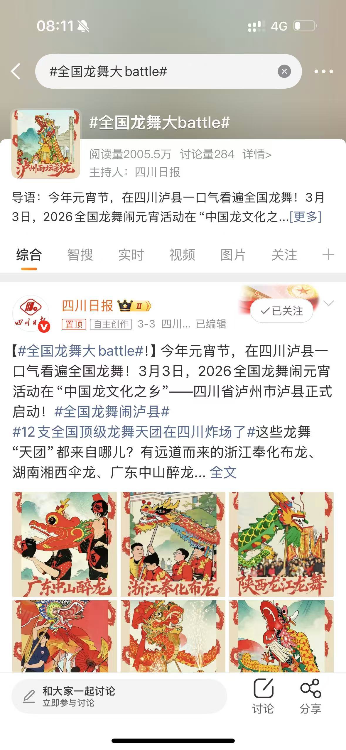 其全国龙舞大battle活动,连登微博同城热搜4次,最高热度超2300万。活动还被新华社、人民网、央广网、南方日报、浙江日报、湖南日报、广西日报、重庆日报、四川日报等90多家主流媒体广泛关注,造就了一抹中国元宵的泸县光亮。