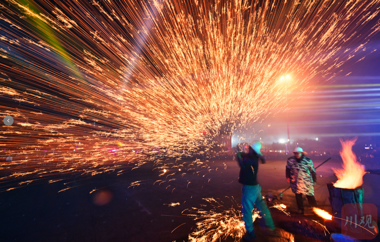 江阳区元宵节活动的打铁花和烧火龙将气氛推向高潮。刘学懿摄