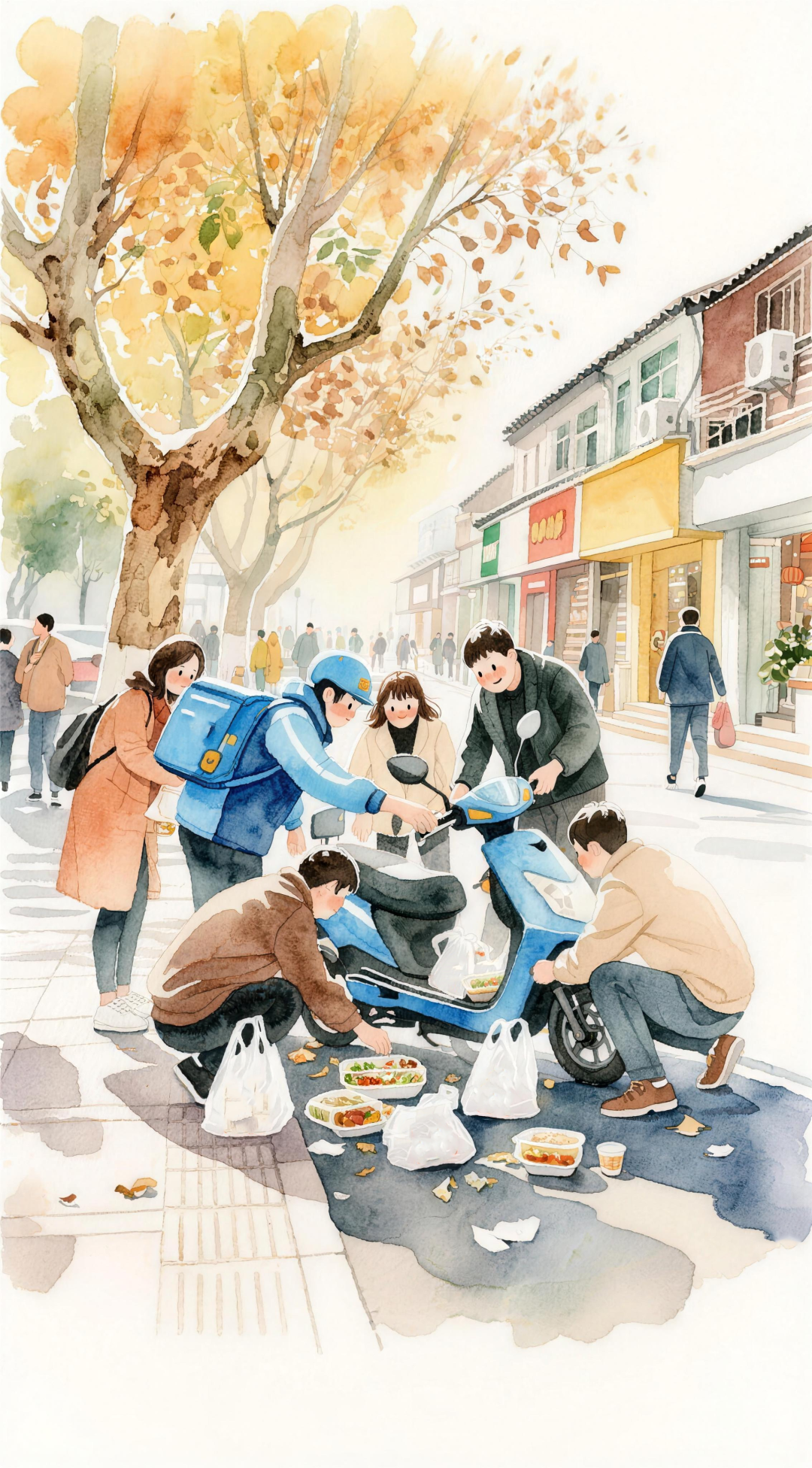“当时他要送的单子撒在地上,一共三份外卖,水饺、鲜花之类的,估计也得赔个一两百块吧?我想到如果这是我的弟弟,碰到这种情况,我心里会怎么想?我把1000元红包塞给他的时候,他推脱了好一会儿。”