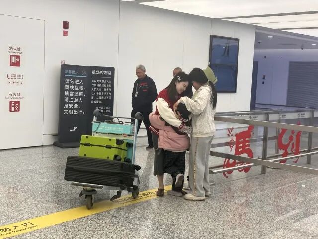 女儿出现在国际到达口后,王女士快步走上前拥抱了日思夜想的女儿,再次落泪。女儿为她擦去泪水,说自己十分想念家乡的味道。站在一旁的王女士说:“一大早就买好了回家的高铁票和食材,回到家就给女儿烧台州的咸羹,多晚也要让她吃上。”