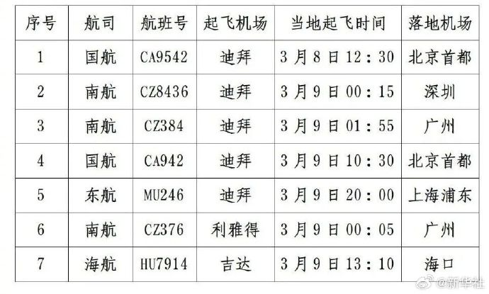 连日来,外交部和中国民航局全力协调,紧急派出航班协助滞留中东地区中国旅客回国。据了解,以下航班尚有余票。外交部领事保护中心建议,滞留中东地区的中国旅客抓紧时间通过以下航班回国,可登录各航空公司微信服务号或小程序购票。