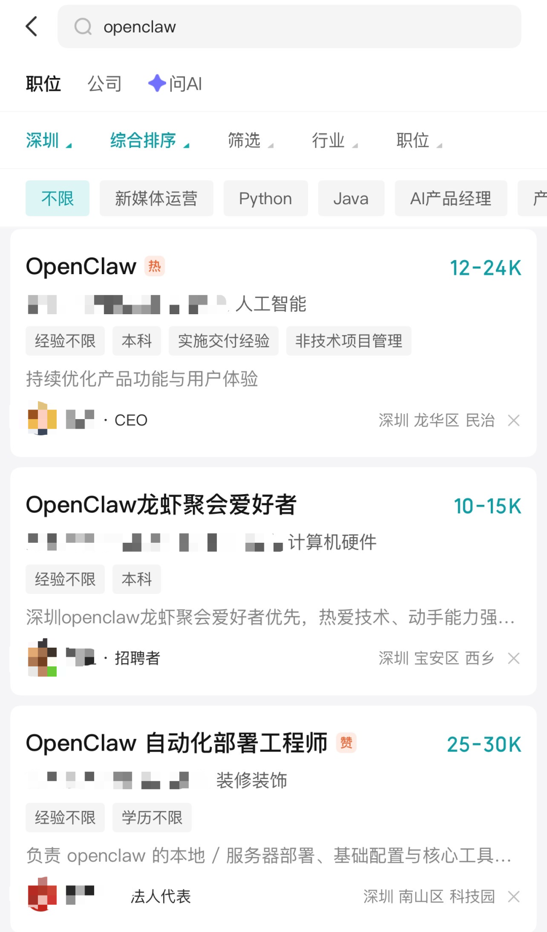 例如,深圳一家私募基金公司在招聘IT实习生时,其岗位职责就包括“深入研究并运用AI工具,如OpenClaw小龙虾、deepseek、豆包等,构建适用于私募基金业务的工作模板”。