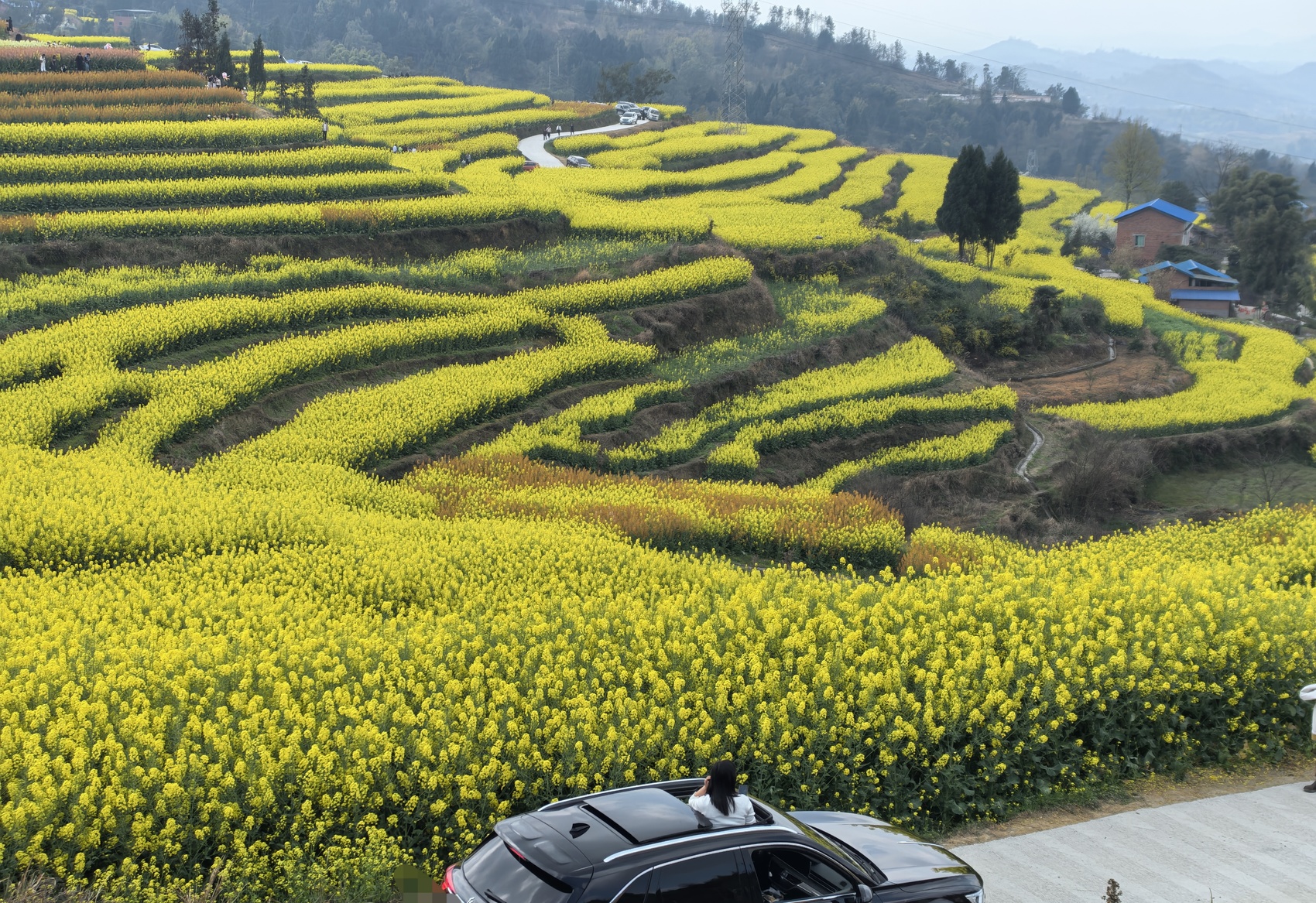 2月下旬以来,达川区龙会乡张家山村油菜花地日均迎客近万人,有力地助推了当地农产品销售。袁城霖 摄