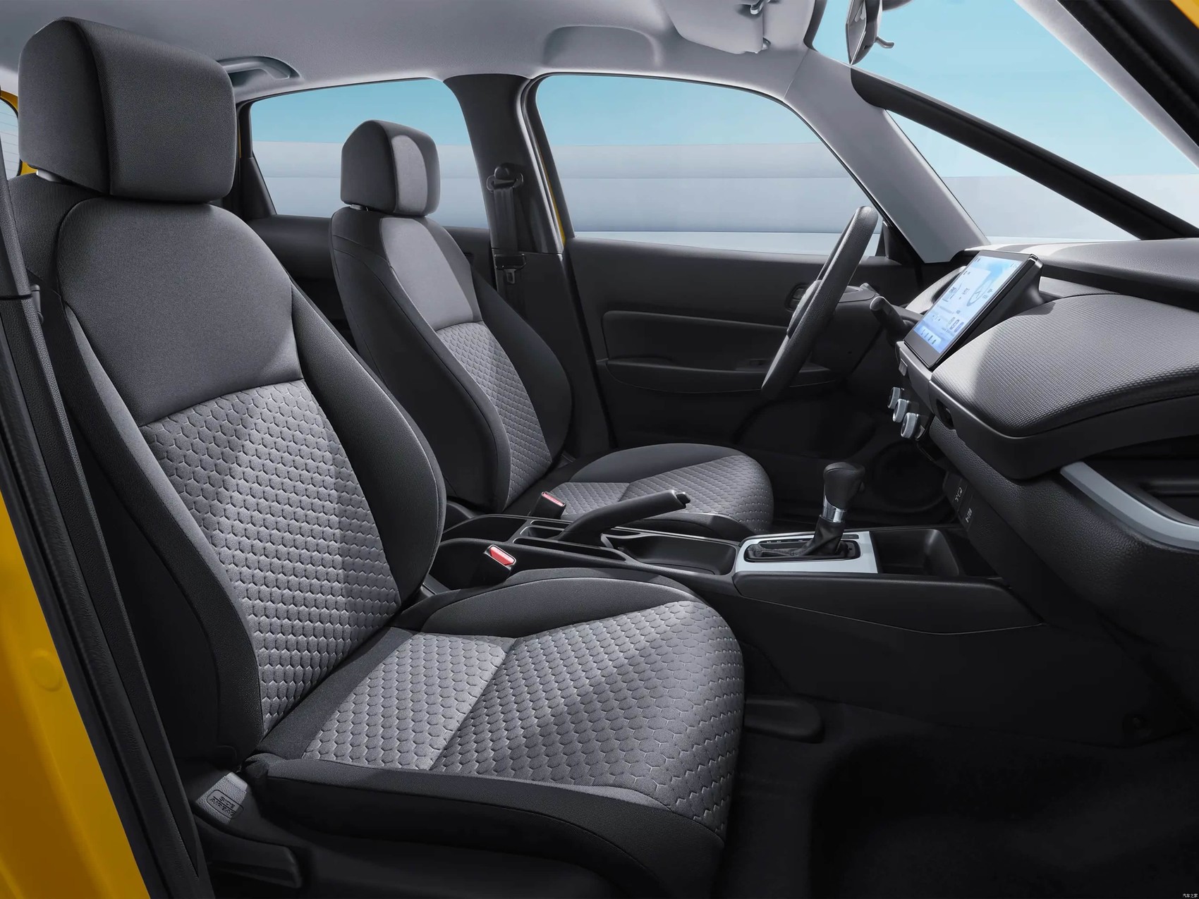 本田飞度焕新版的内饰延续了简约实用的T字形布局,一切以功能性和耐用性为先。内饰材质以塑料为主,符合该价位燃油车的水准。不过,在智能化上它并未掉队,仪表盘配备了7英寸全液晶屏幕,中控屏升级至10.1英寸彩色智能屏,支持HUAWEI HiCar、Apple CarPlay和百度CarLife三大主流互联平台,手机投屏、导航同步等功能一应俱全。座椅采用织物材质,坐垫增厚了30mm,内部以树脂垫替代传统弹簧,有效提升了臀部和腰部的支撑性,长途乘坐更舒适。后排保留了飞度标志性的“魔术座椅”,靠背支持4/6比例放倒,座垫可向上翻折,能灵活腾出极高的垂直空间,搬运绿植或小家电等大件物品非常方便。后备厢常规容积为330L,座椅放倒后可扩展至1210L,空间灵活性在同级中难寻对手。