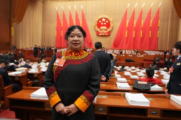 去年的全国两会上,王永兰身着彝族服饰亮相。今年也不例外。“穿着嘞。”