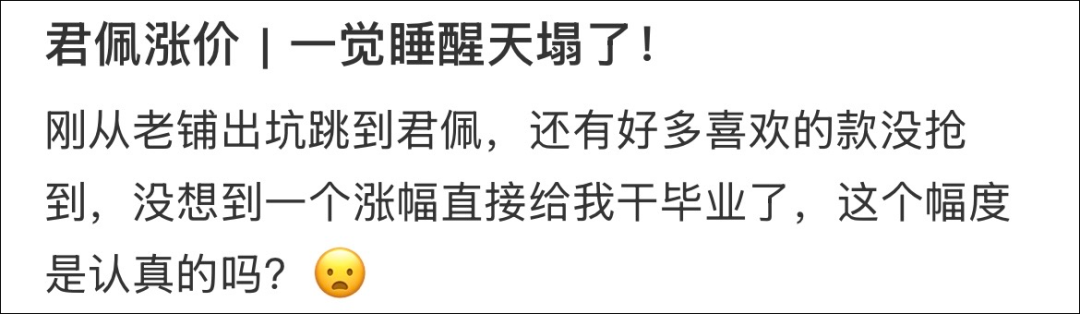 “君佩要不要这么离谱,一觉醒来暴涨8000??”今天一早,不少网友在对比了涨价前后的价格之后,发现涨价幅度惊人。