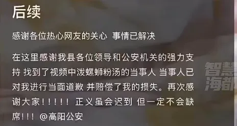 3月7日晚,当事人发帖称,警方已找到视频中的黑衣女子,对方已进行当面道歉和赔偿损失。