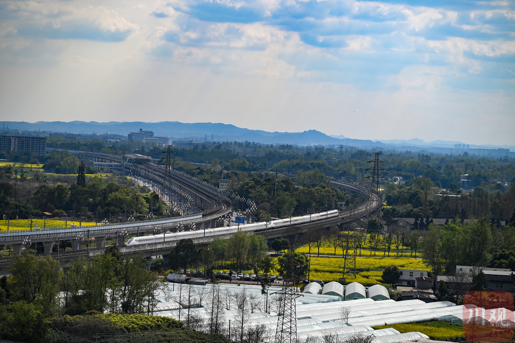 2026年3月9日,成都市双流区黄水镇的油菜花进入盛花期,连片金黄铺满大地,动车组与地铁10号线列车穿行其间,构成了市民口中“开往春天的列车”的图景。