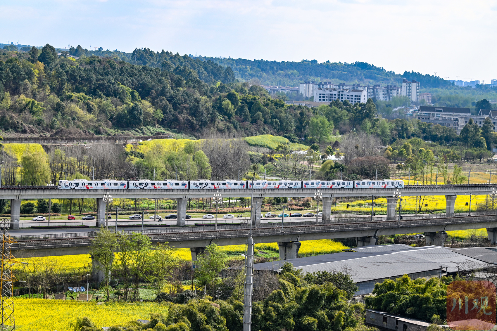 2026年3月9日,地铁穿行在成都市双流区黄水镇的油菜花田中。