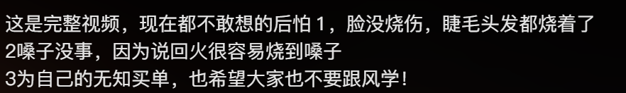 这种为了流量,只展示“酷”,刻意隐瞒巨大安全隐患的内容,真的太不负责任了。平台算法和创作者一起,把危险包装成潮流,把烧伤风险藏在滤镜和BGM后面,这不是分享,是害人