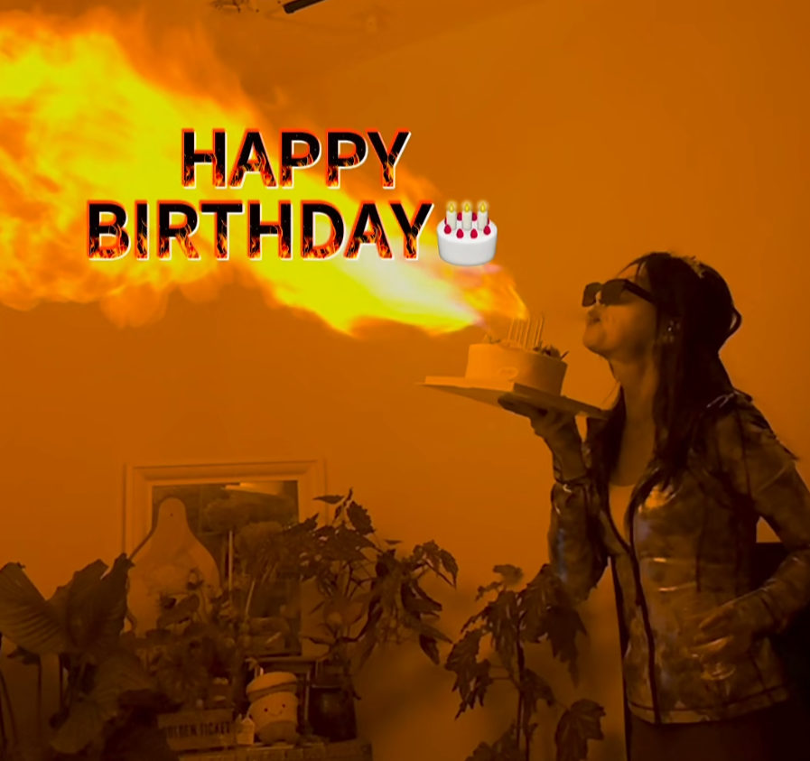 她表示自己被小红书上的生日喷火视频害惨了: